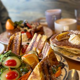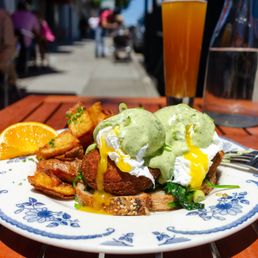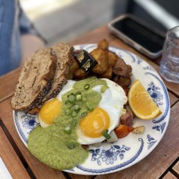 This adorable but unassuming corner restaurant has few seats. The size of the restaurant means whatever magician is back there cooking can take their sweet time and give a lot of love to every single dish. Now that's not to say it doesn't come out fast, because it does!! And when it did, ah!Every single thing on our plate was exquisite, every element given utmost attention. Potatoes - Chef's kiss! A perfect amount of cripsness, and tasty all the way through. I had the zucchini pancakes, because I couldn't resist such a unique sounding dish. My partner had the Seafood Benedict; it was luscious and full of seafood. The sausage patty was so good that I took it home with me and had it as a snack later on. The drinks are excellent. I had an Americano and my partner a hot chocolate. The amount of detail that went into the drink matched that paid to the food. Our server was delightful; she had a spontaneous and studied way of looking at me with pride when I would order the best thing on the menu. It was really cute, and gave me a sense of anticipation. Absolutely delightful experience.
